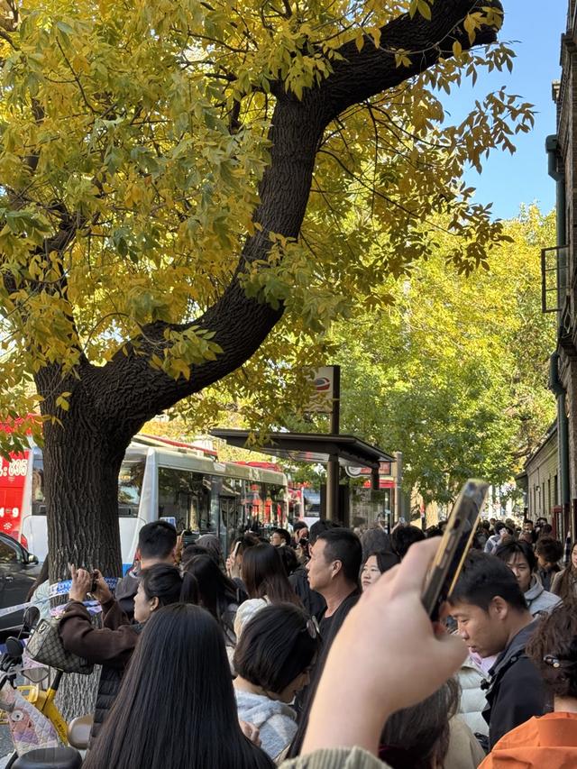 北京深秋的赏叶季到来,五四大街两侧的白蜡树率先变黄,诸多游客来这里寻找“北平之秋”。在社交平台上,各大博主纷纷推荐这一赏秋路线,有的晒出美照,有的分享打卡机位。自从五四大街成为网红打卡地,交通拥堵和安全隐患也随之而来。